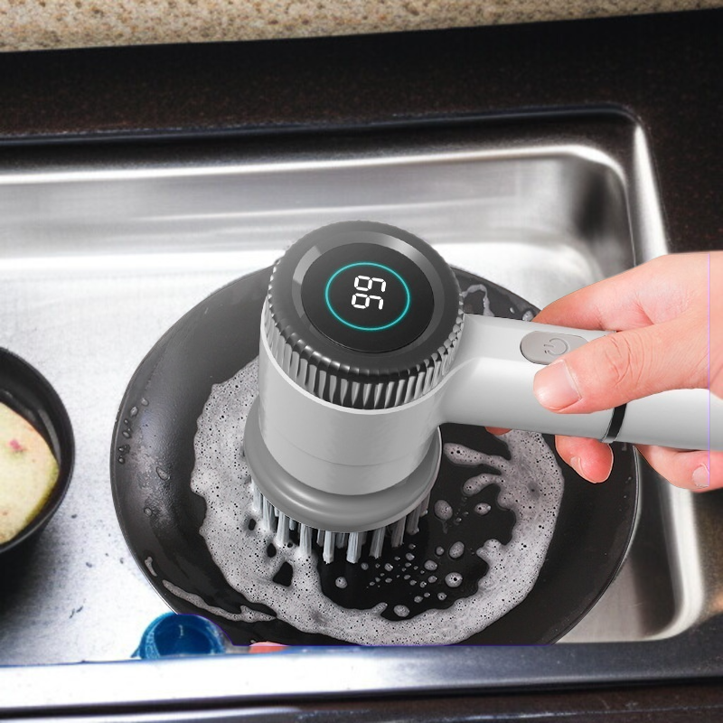 ● コードレス設計で、どこでも手軽に使える多機能電動クリーニングブラシ。キッチンや浴室など様々な場所で活躍します。